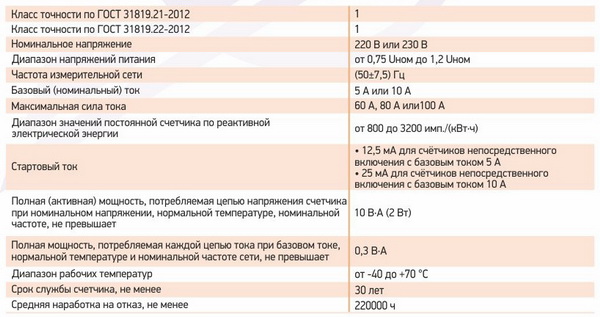 Основные технические характеристики однофазного электросчетчика "AИСТ-1-W3"