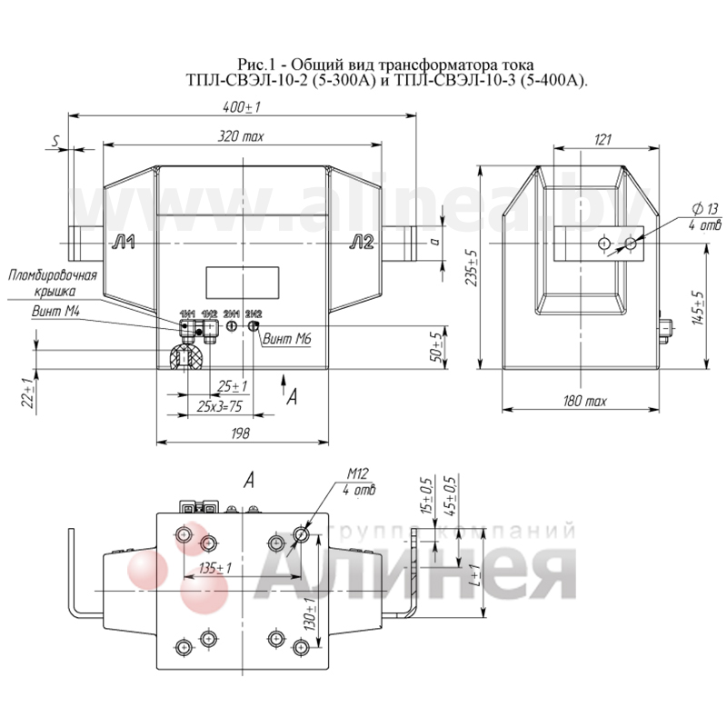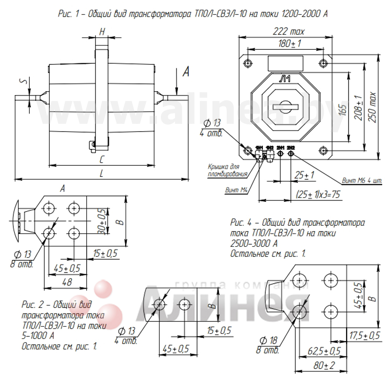 * В связи с большой номенклатурой измерительных трансформаторов, габаритные размеры на все исполнения и полный обзор габаритных чертежей, схем и характеристик представлен на сайте производителя.
