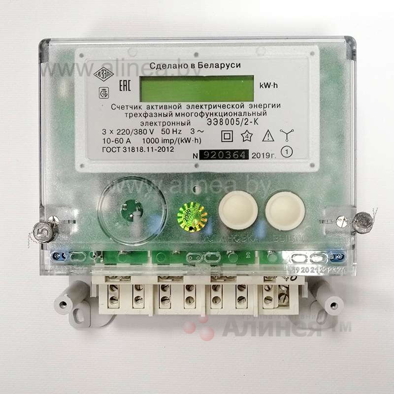 Счетчик электроэнергии ЭЭ8005/2 электронный, многотарифный, трехфазный, A+, 400В, 10(60)А (прямого включения), RS-485