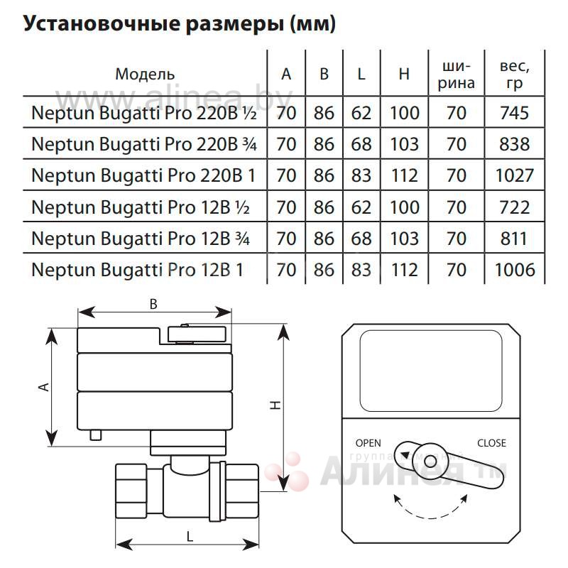 Кран шаровой (шаровый) с электроприводом Neptun (Нептун) Bugatti Pro 12В, 1"