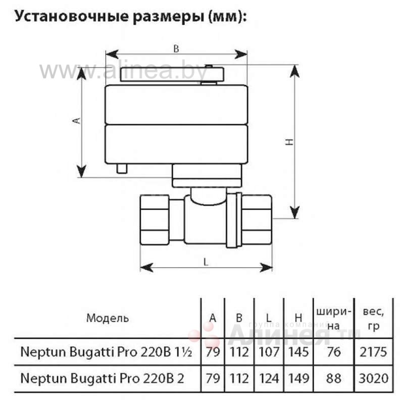 Кран шаровой (шаровый) с электроприводом Neptun (Нептун) Bugatti Pro 220В, 1 1/2" (1.5")